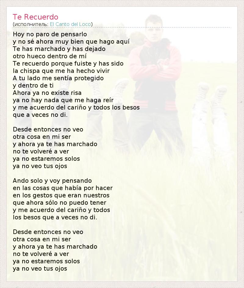 А как ты думаешь, о чем песня "Te Recuerdo" ?