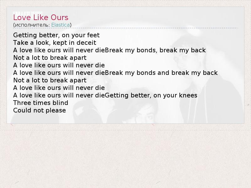 А как ты думаешь, о чем песня "Love Like Ours" ?