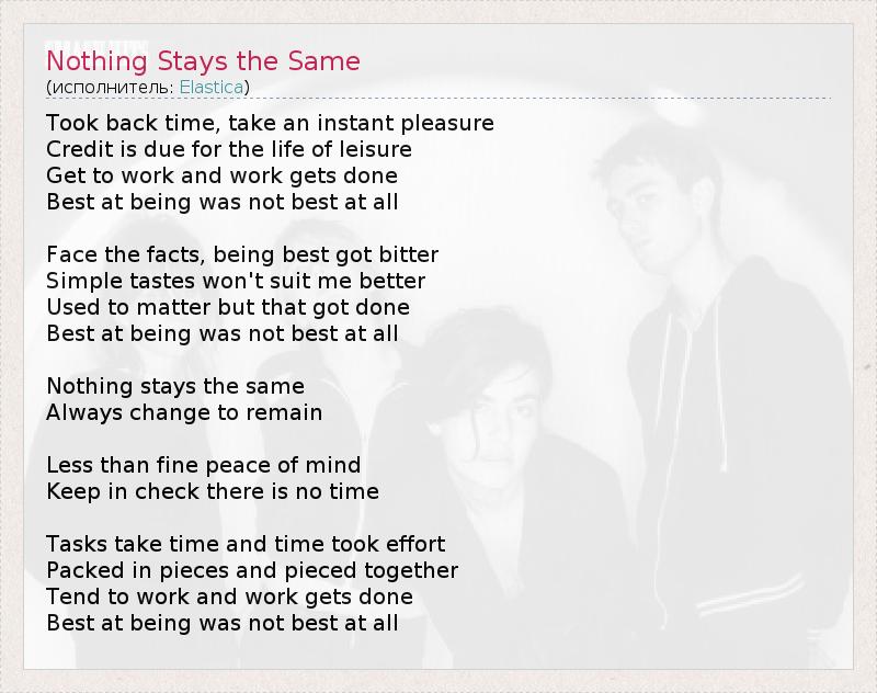 А как ты думаешь, о чем песня "Nothing Stays the Same" ?