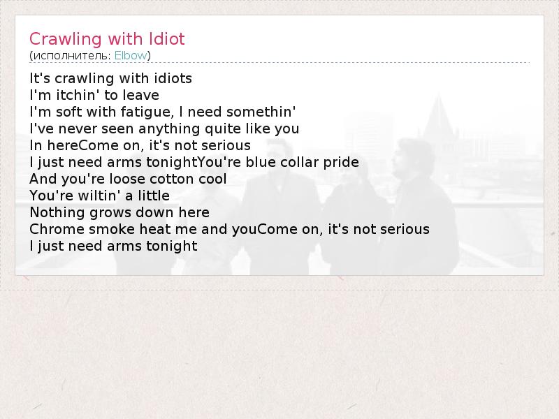 А как ты думаешь, о чем песня "Crawling with Idiot" ?