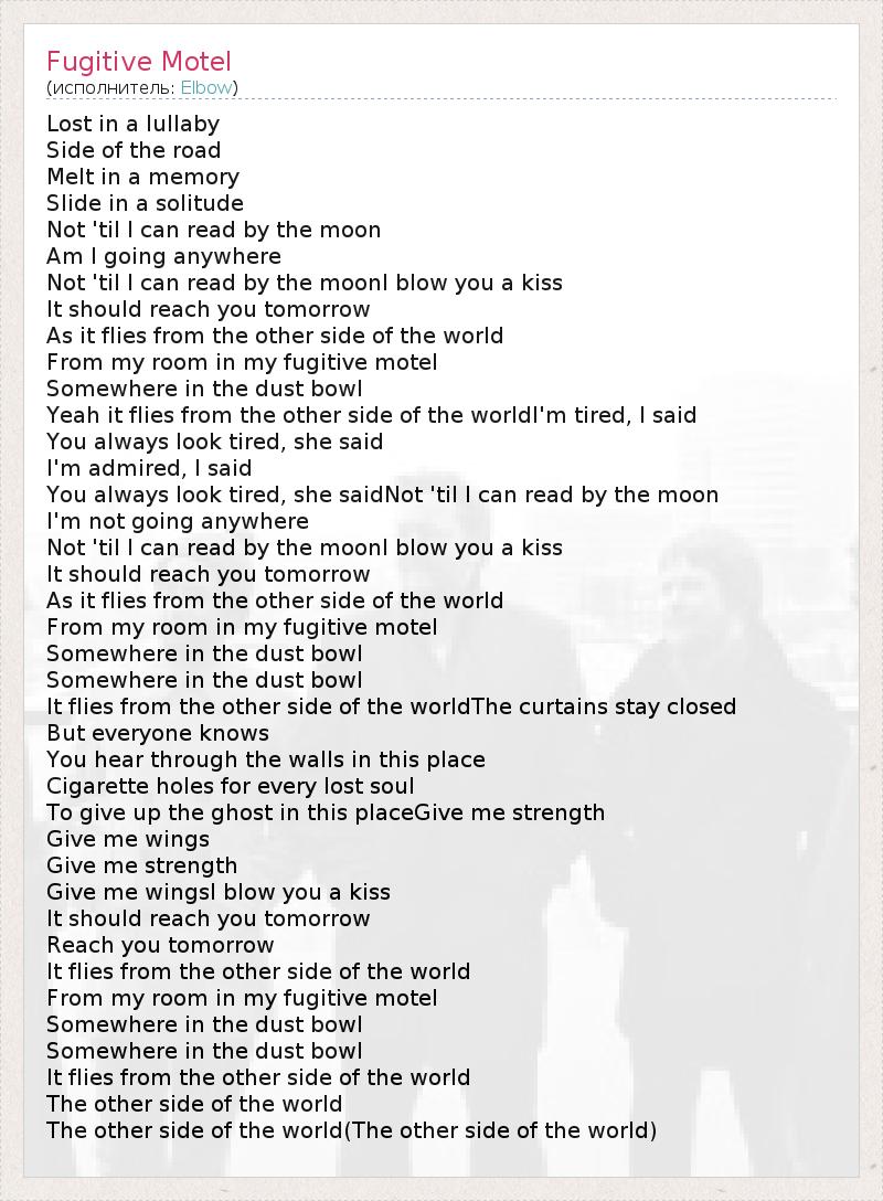 А как ты думаешь, о чем песня "Fugitive Motel" ?