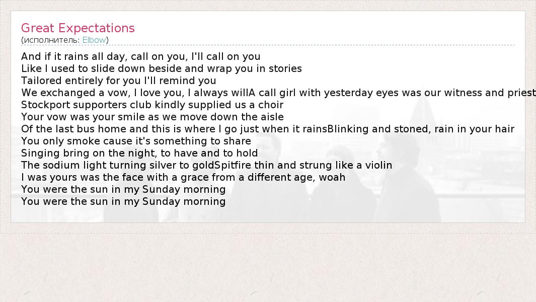 А как ты думаешь, о чем песня "Great Expectations" ?