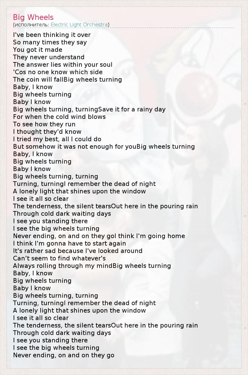 А как ты думаешь, о чем песня "Big Wheels" ?