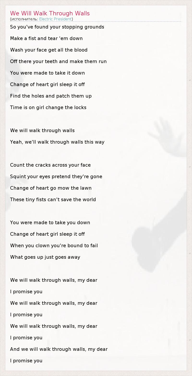А как ты думаешь, о чем песня "We Will Walk Through Walls" ?