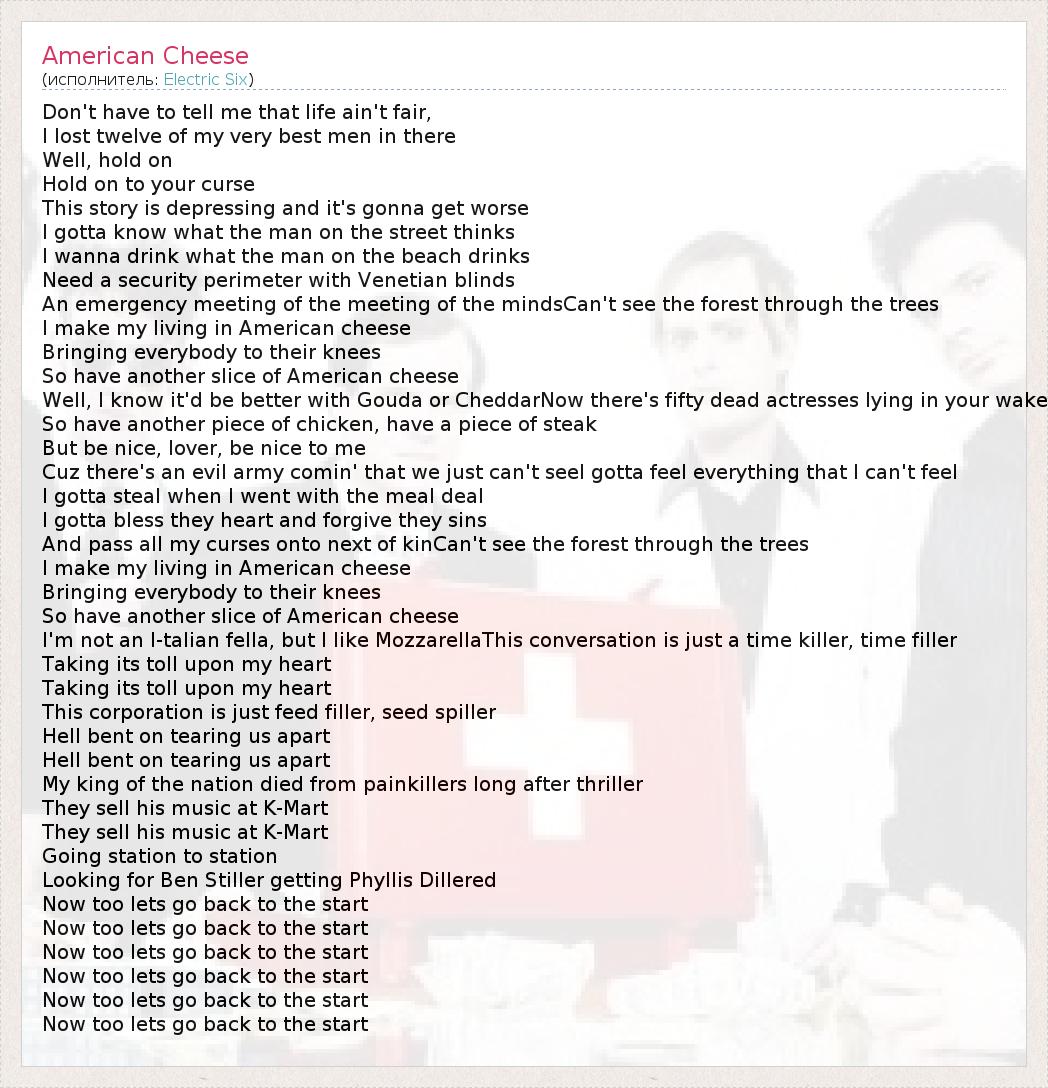 А как ты думаешь, о чем песня "American Cheese" ?