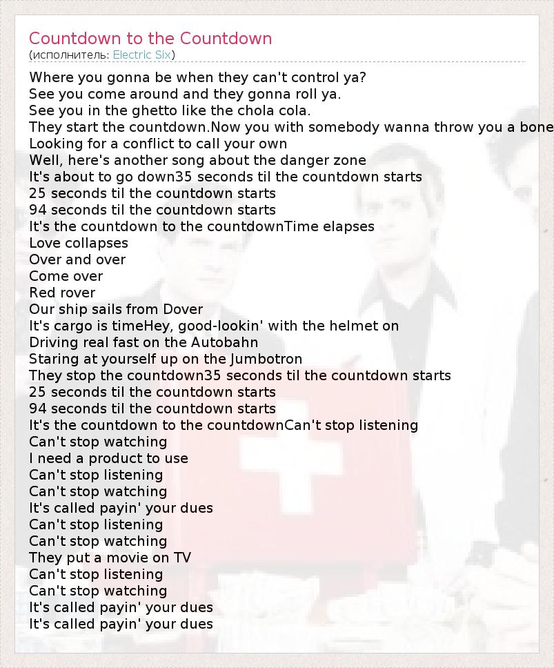 А как ты думаешь, о чем песня "Countdown to the Countdown" ?