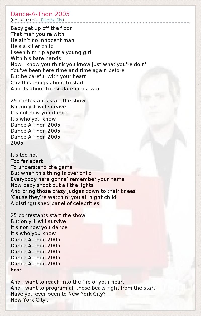 А как ты думаешь, о чем песня "Dance-A-Thon 2005" ?