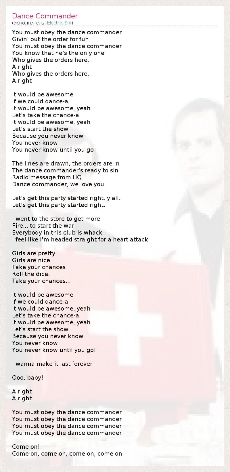 А как ты думаешь, о чем песня "Dance Commander" ?