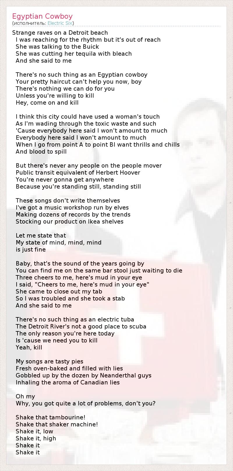 А как ты думаешь, о чем песня "Egyptian Cowboy" ?