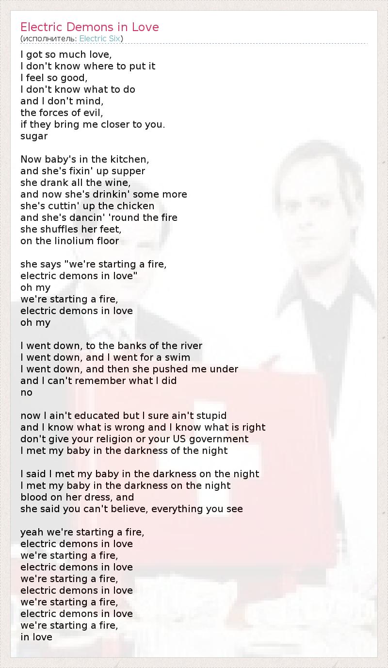 А как ты думаешь, о чем песня "Electric Demons in Love" ?
