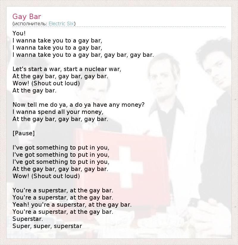 I wanna take you to a gay bar, gay bar, gay bar.