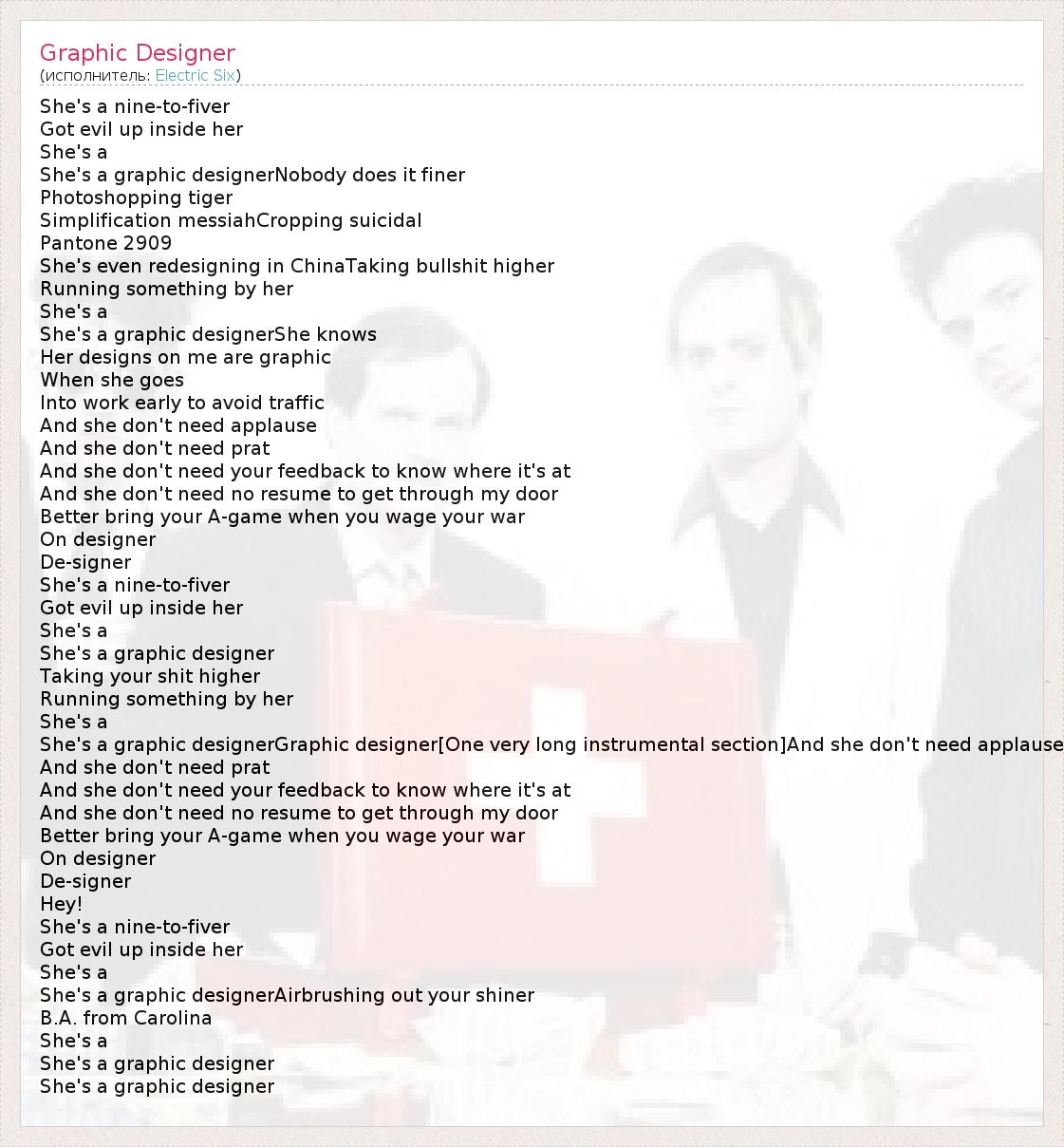 А как ты думаешь, о чем песня "Graphic Designer" ?