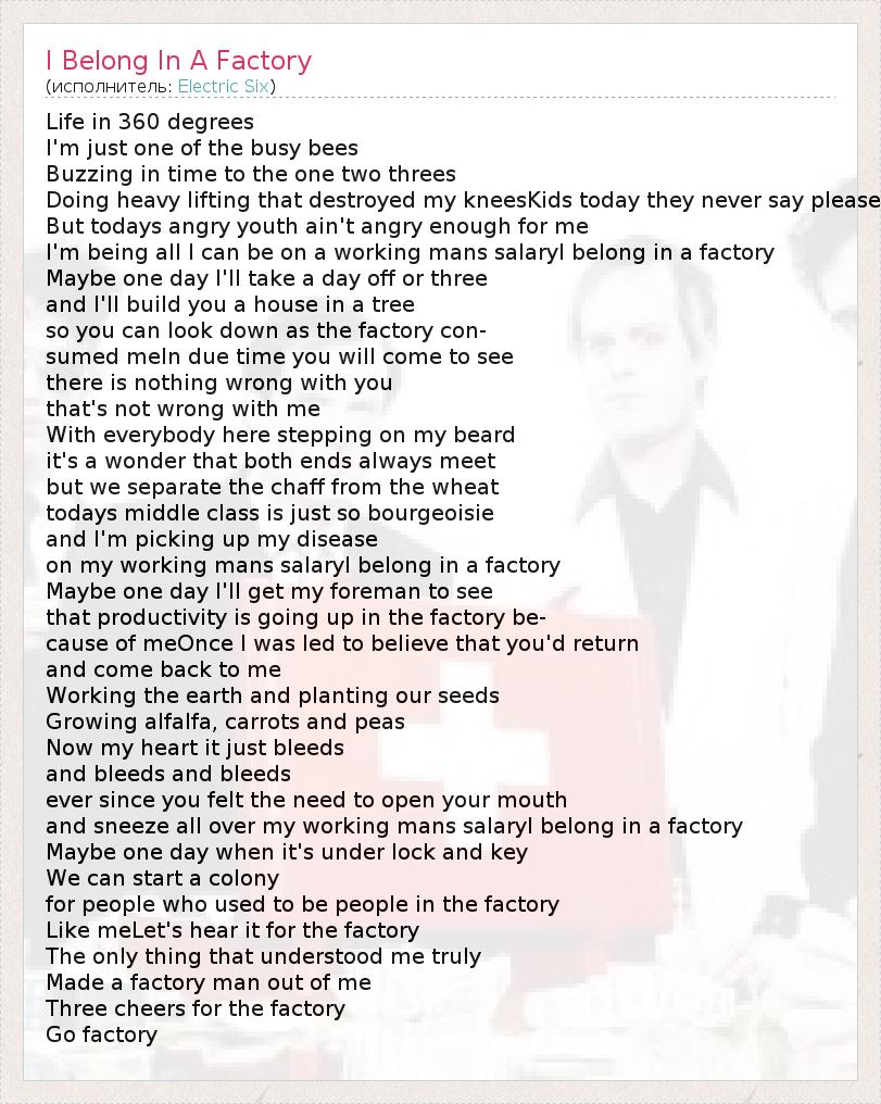 А как ты думаешь, о чем песня "I Belong In A Factory" ?