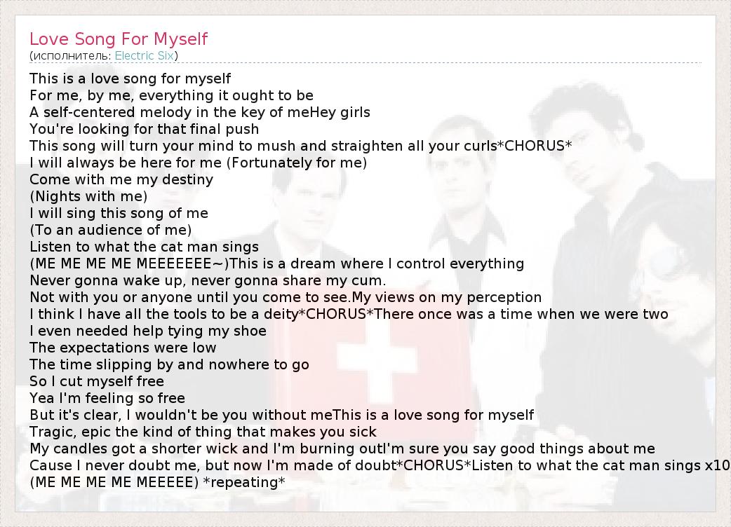 А как ты думаешь, о чем песня "Love Song For Myself" ?