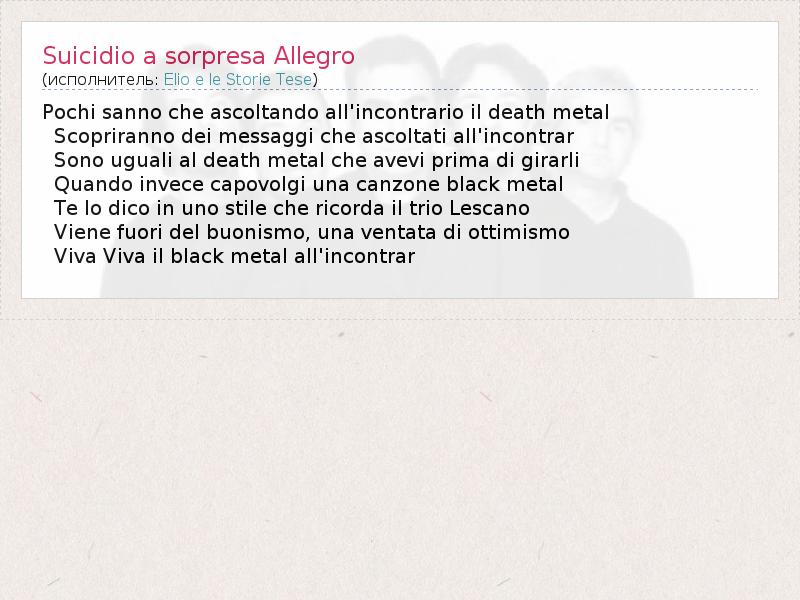 А как ты думаешь, о чем песня "Suicidio a sorpresa Allegro" ?