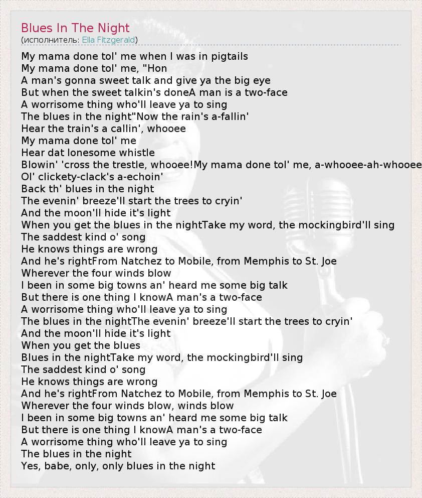 А как ты думаешь, о чем песня "Blues In The Night" ?