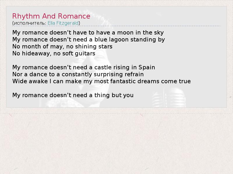А как ты думаешь, о чем песня "Rhythm And Romance" ?