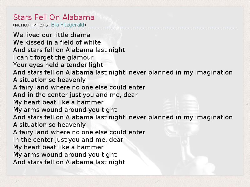А как ты думаешь, о чем песня "Stars Fell On Alabama" ?