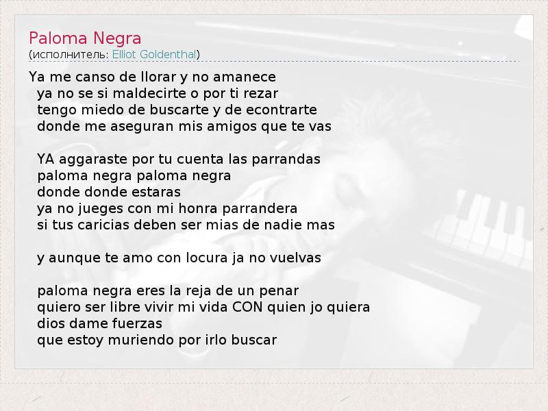 А как ты думаешь, о чем песня "Paloma Negra" ?