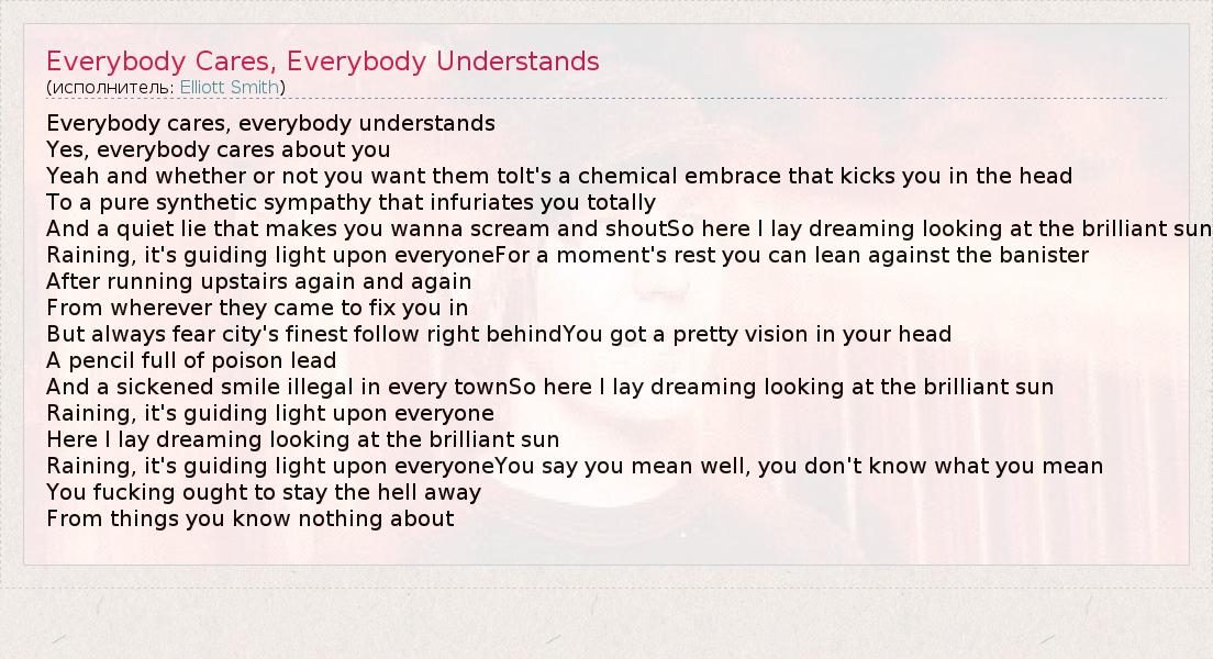 ГлавнаяИсполнителиElliott SmithEverybody Cares, Everybody Understands