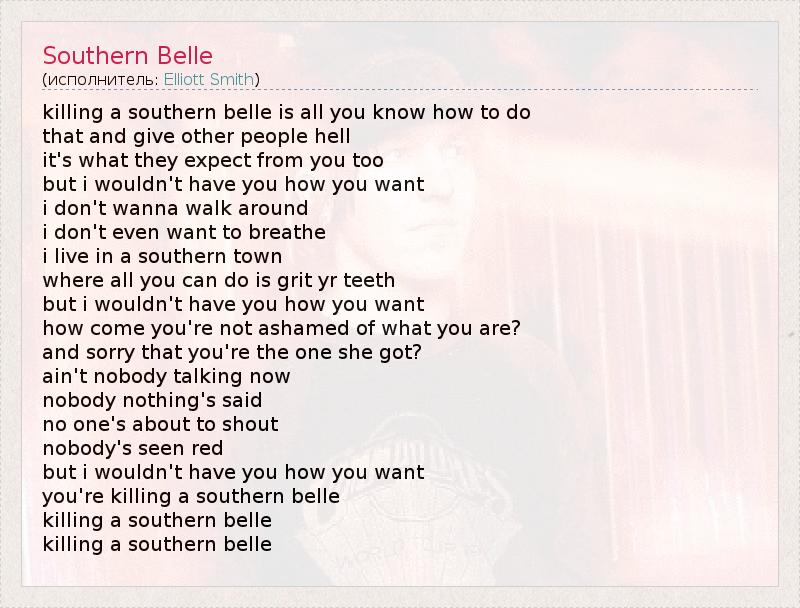 А как ты думаешь, о чем песня "Southern Belle" ?
