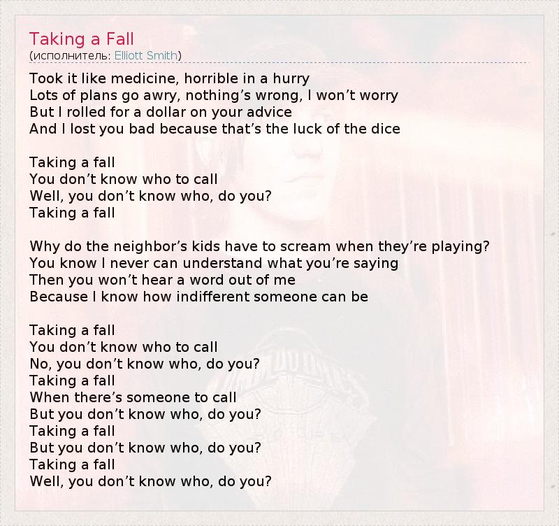 А как ты думаешь, о чем песня "Taking a Fall" ?