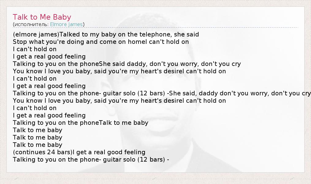 А как ты думаешь, о чем песня "Talk to Me Baby" ?