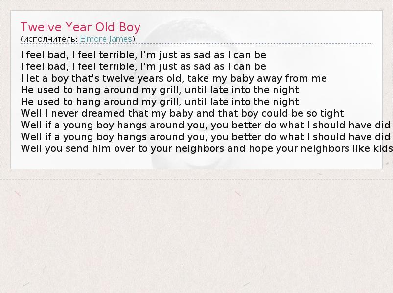 А как ты думаешь, о чем песня "Twelve Year Old Boy" ?