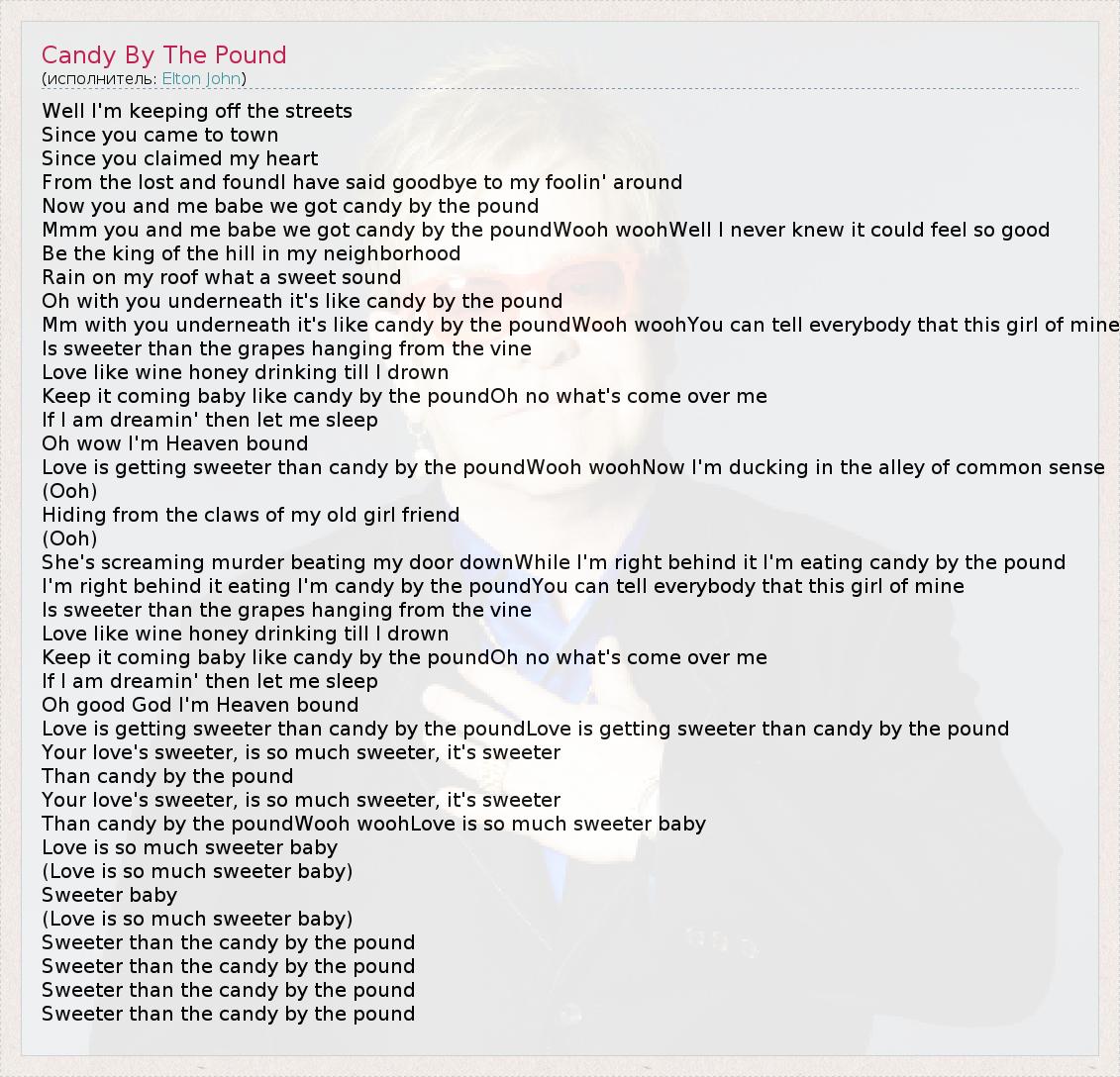 А как ты думаешь, о чем песня "Candy By The Pound" ?