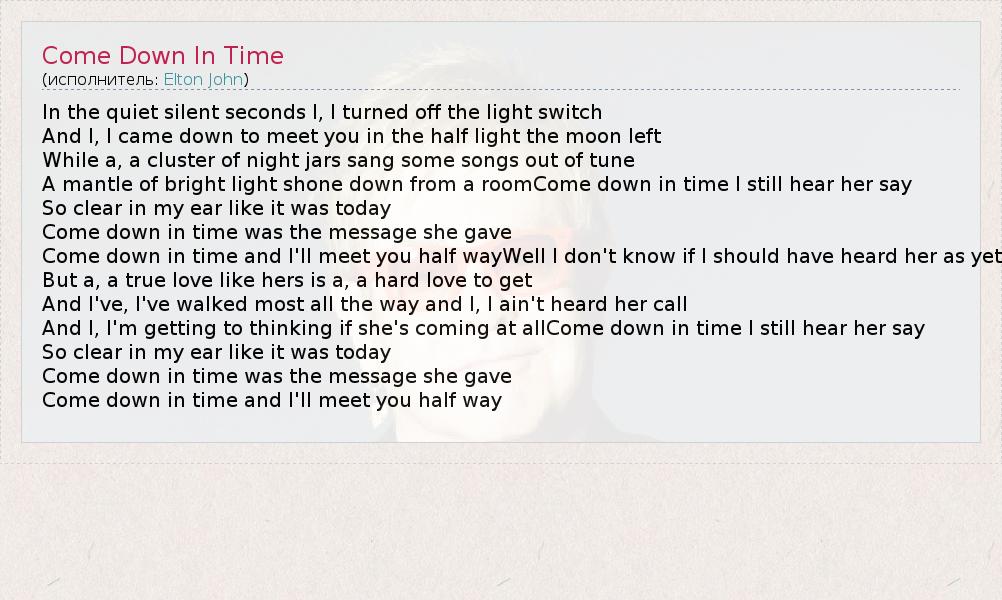 А как ты думаешь, о чем песня "Come Down In Time" ?
