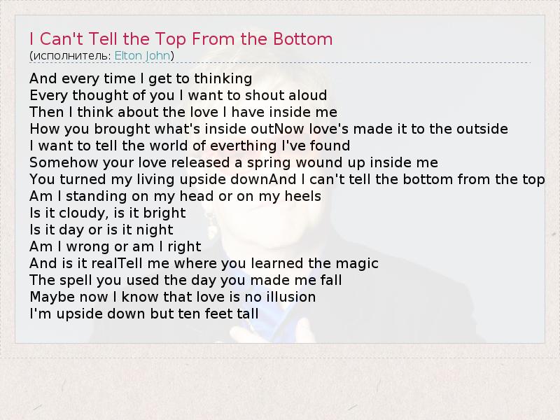 А как ты думаешь, о чем песня "I Can't Tell the Top From the Bottom" ?