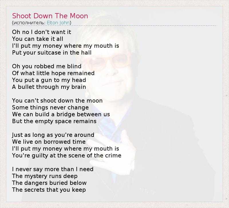 А как ты думаешь, о чем песня "Shoot Down The Moon" ?