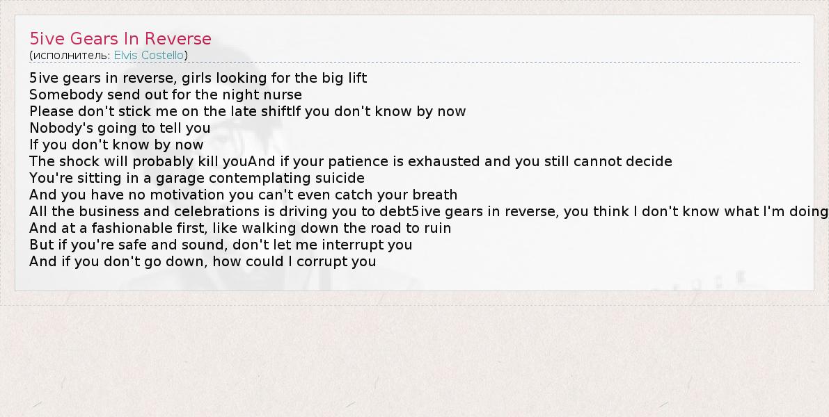 А как ты думаешь, о чем песня "5ive Gears In Reverse" ?