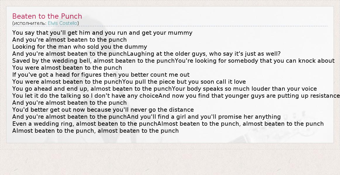 А как ты думаешь, о чем песня "Beaten to the Punch" ?