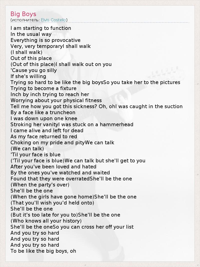 Это интересно:Певец и композитор Элвис Костелло (настоящее имя Диклэн Макманус) родился 25 августа 1954 года в Великобритании.Элвис Костелло начал свою музыкальную карьеру в группе Flip City, которая выступала в лондонских пивных, - в тот период (середина семидесятых) он взял псевдоним Элвис Костелло и заинтересовался фолк-роком. Долгое время ему не удавалось получить контракт на запись: представителей крупных... продолжение