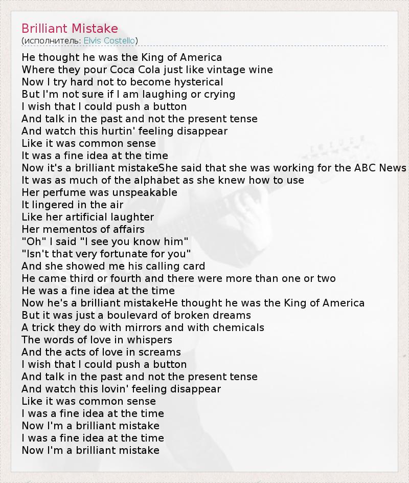 А как ты думаешь, о чем песня "Brilliant Mistake" ?