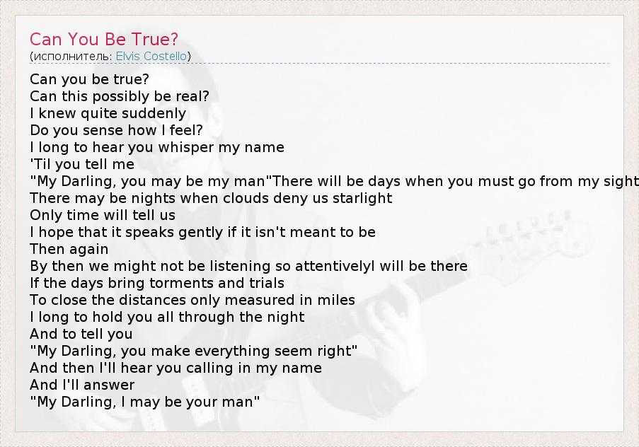 А как ты думаешь, о чем песня "Can You Be True?" ?