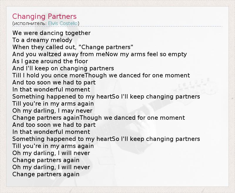 А как ты думаешь, о чем песня "Changing Partners" ?