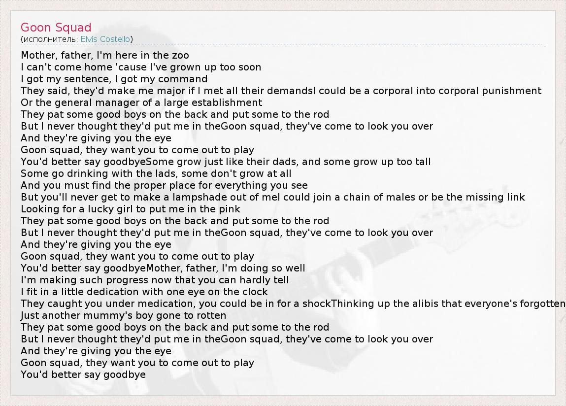А как ты думаешь, о чем песня "Goon Squad" ?