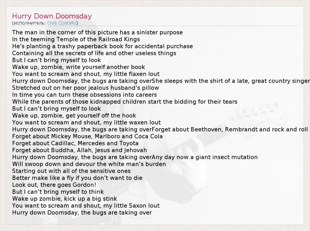 А как ты думаешь, о чем песня "Hurry Down Doomsday" ?