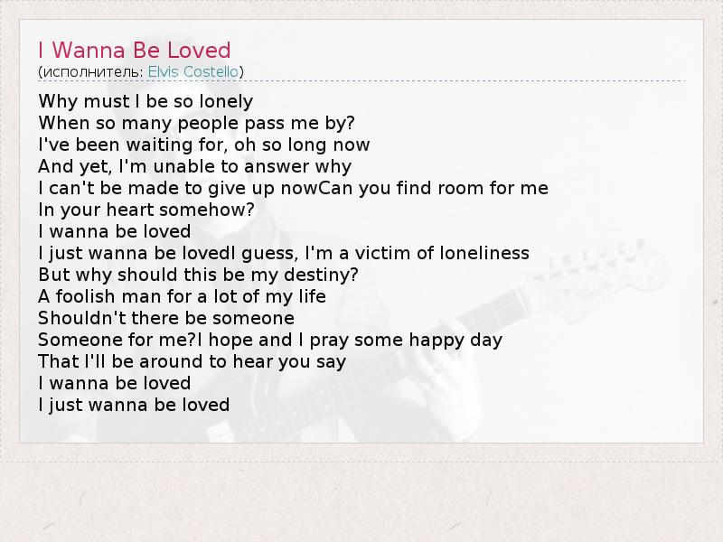 А как ты думаешь, о чем песня "I Wanna Be Loved" ?