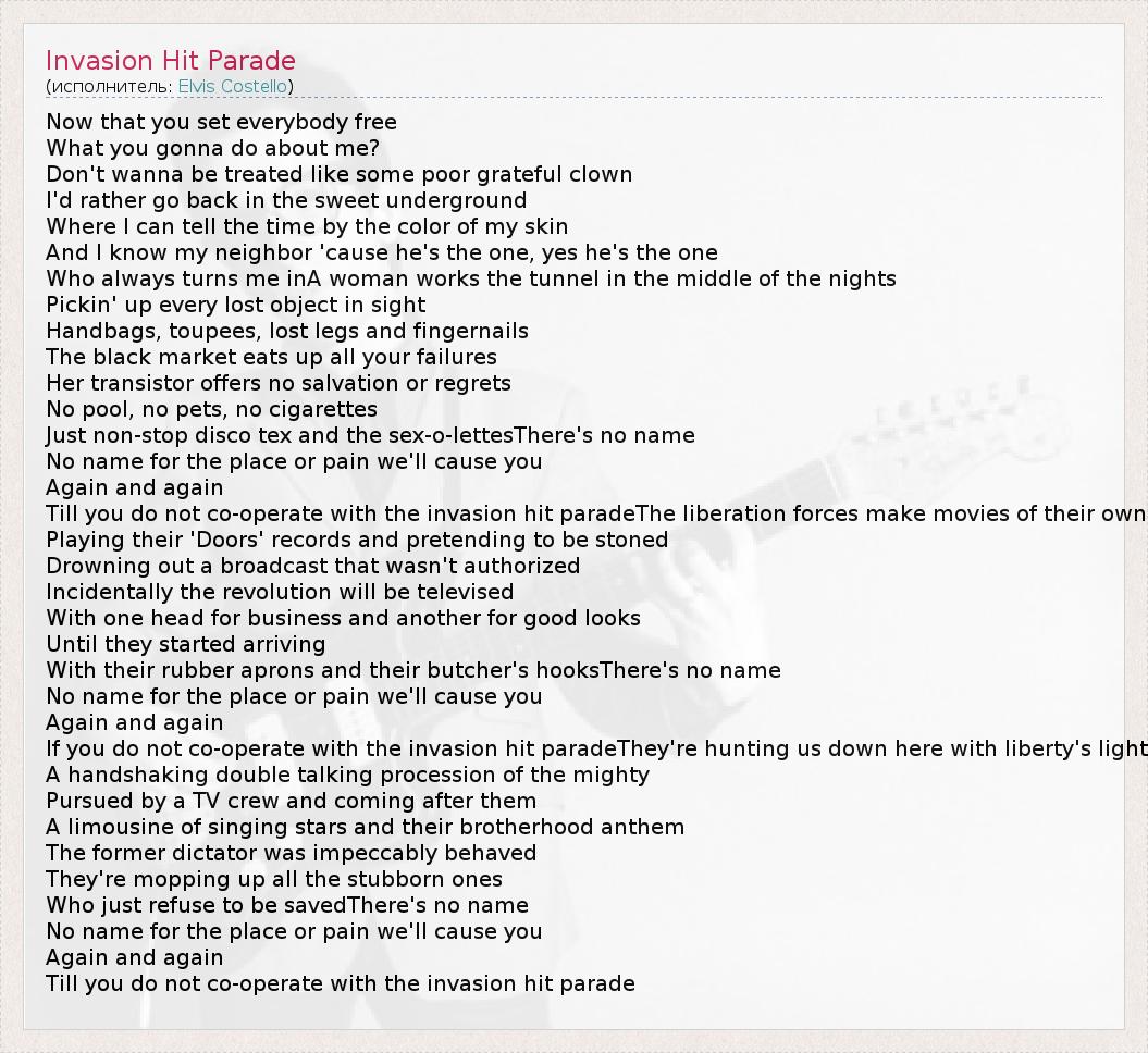 А как ты думаешь, о чем песня "Invasion Hit Parade" ?