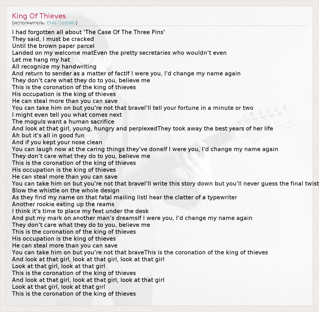 А как ты думаешь, о чем песня "King Of Thieves" ?