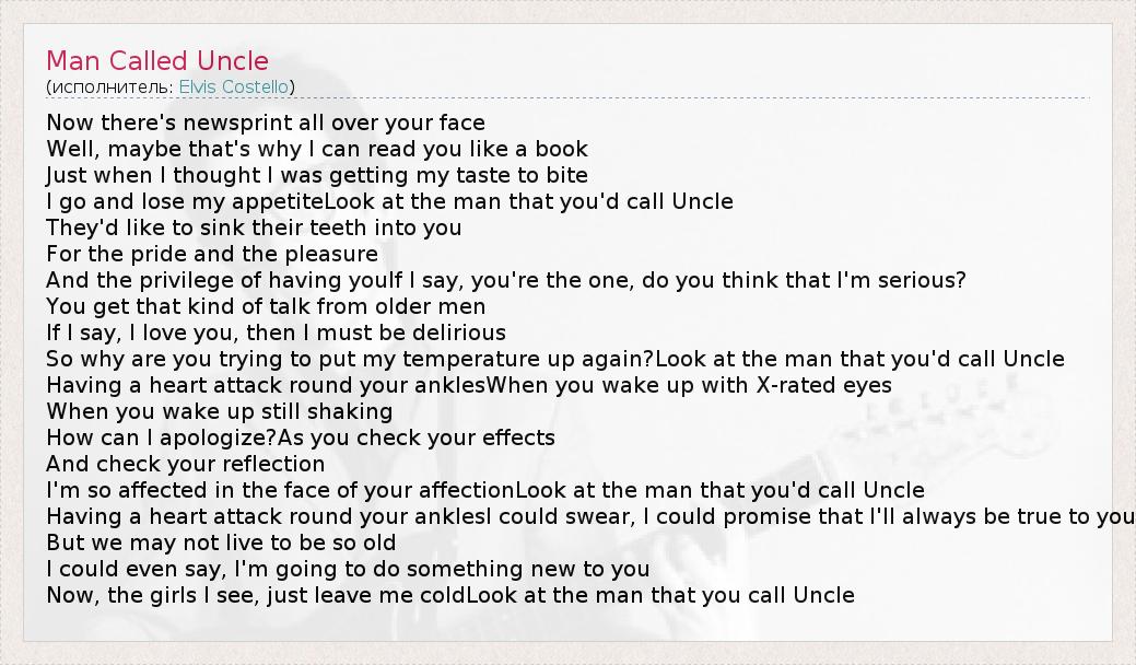 А как ты думаешь, о чем песня "Man Called Uncle" ?