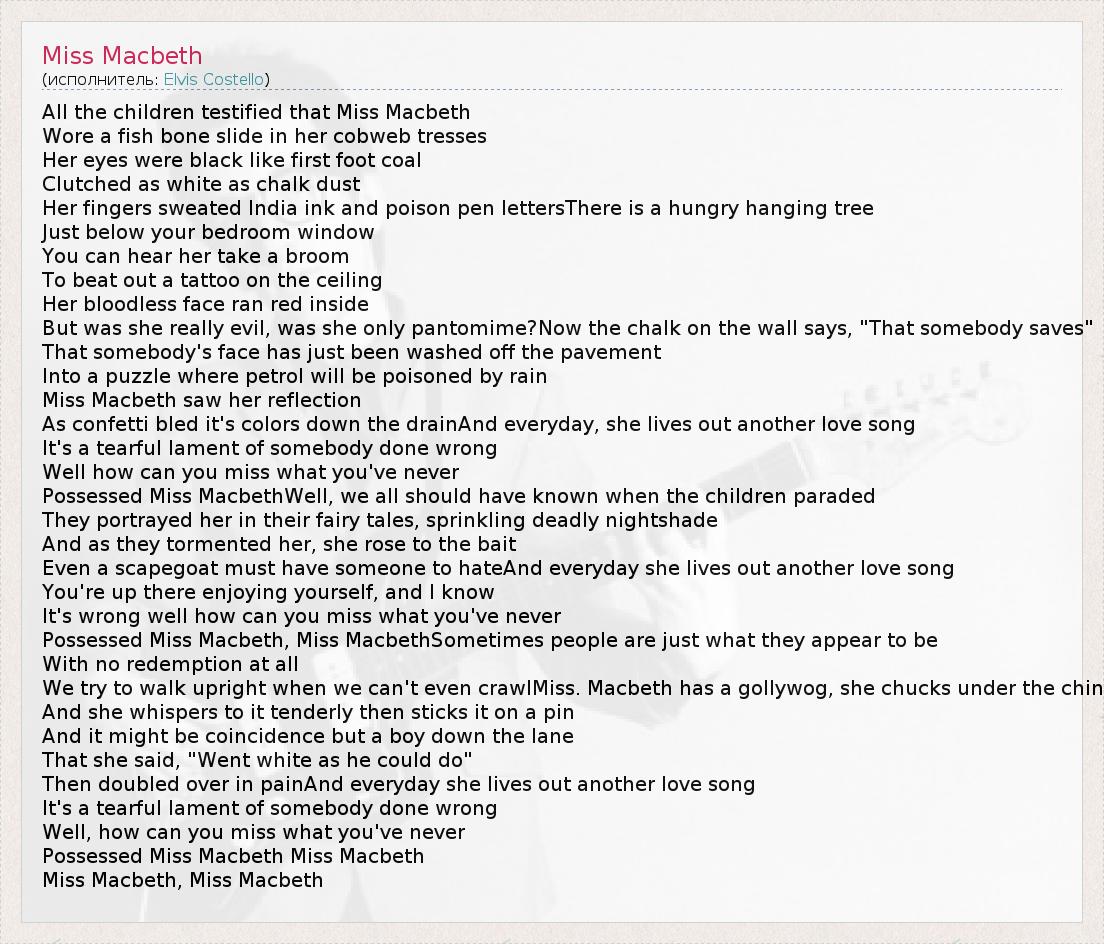 А как ты думаешь, о чем песня "Miss Macbeth" ?