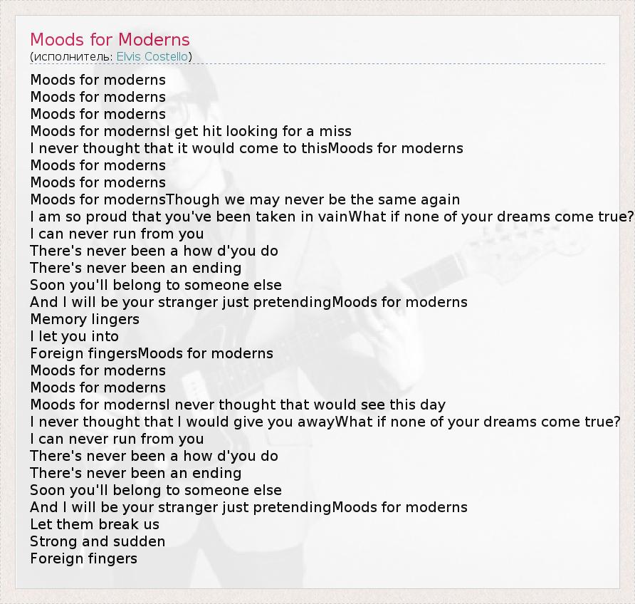 А как ты думаешь, о чем песня "Moods for Moderns" ?