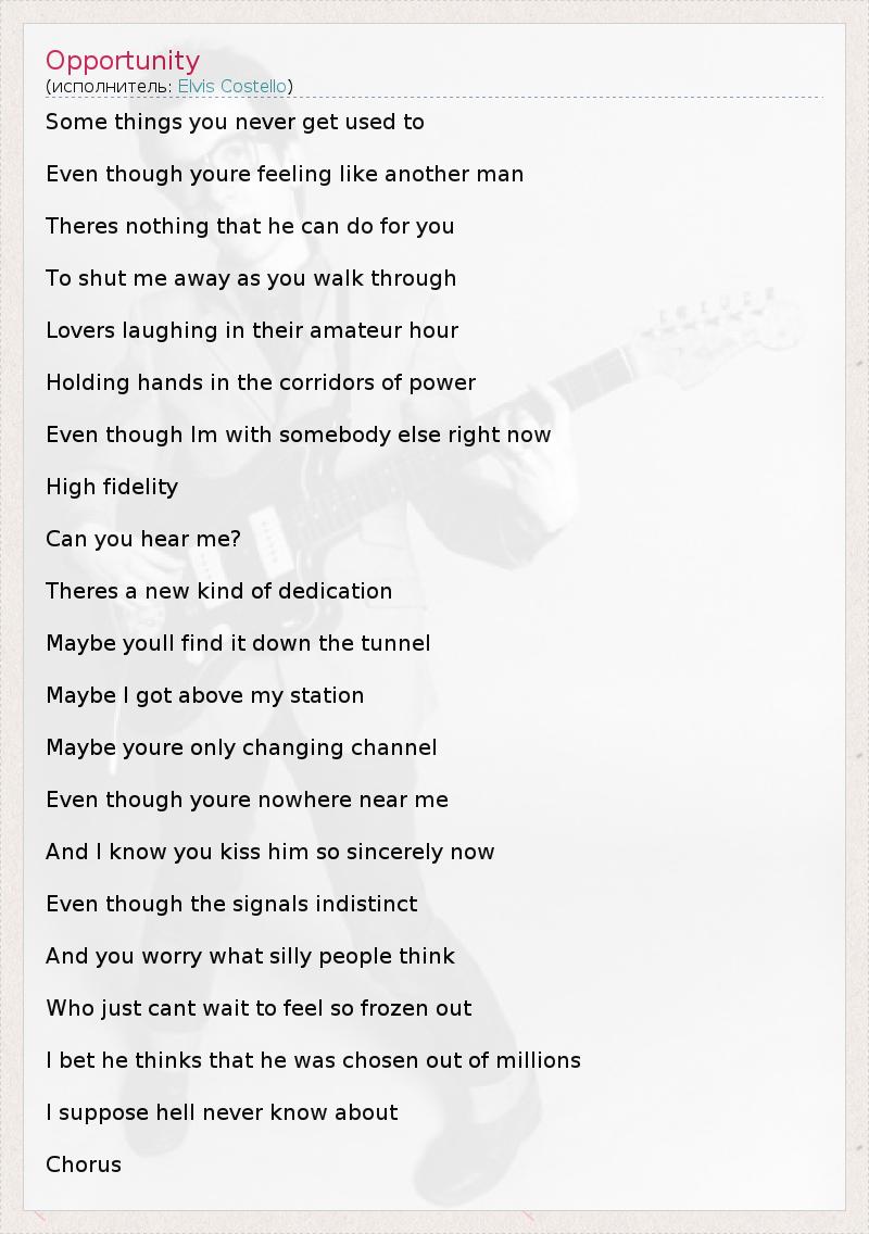 А как ты думаешь, о чем песня "Opportunity" ?