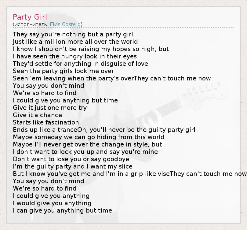 Ends up like a tranceOh, you'll never be the guilty party girl