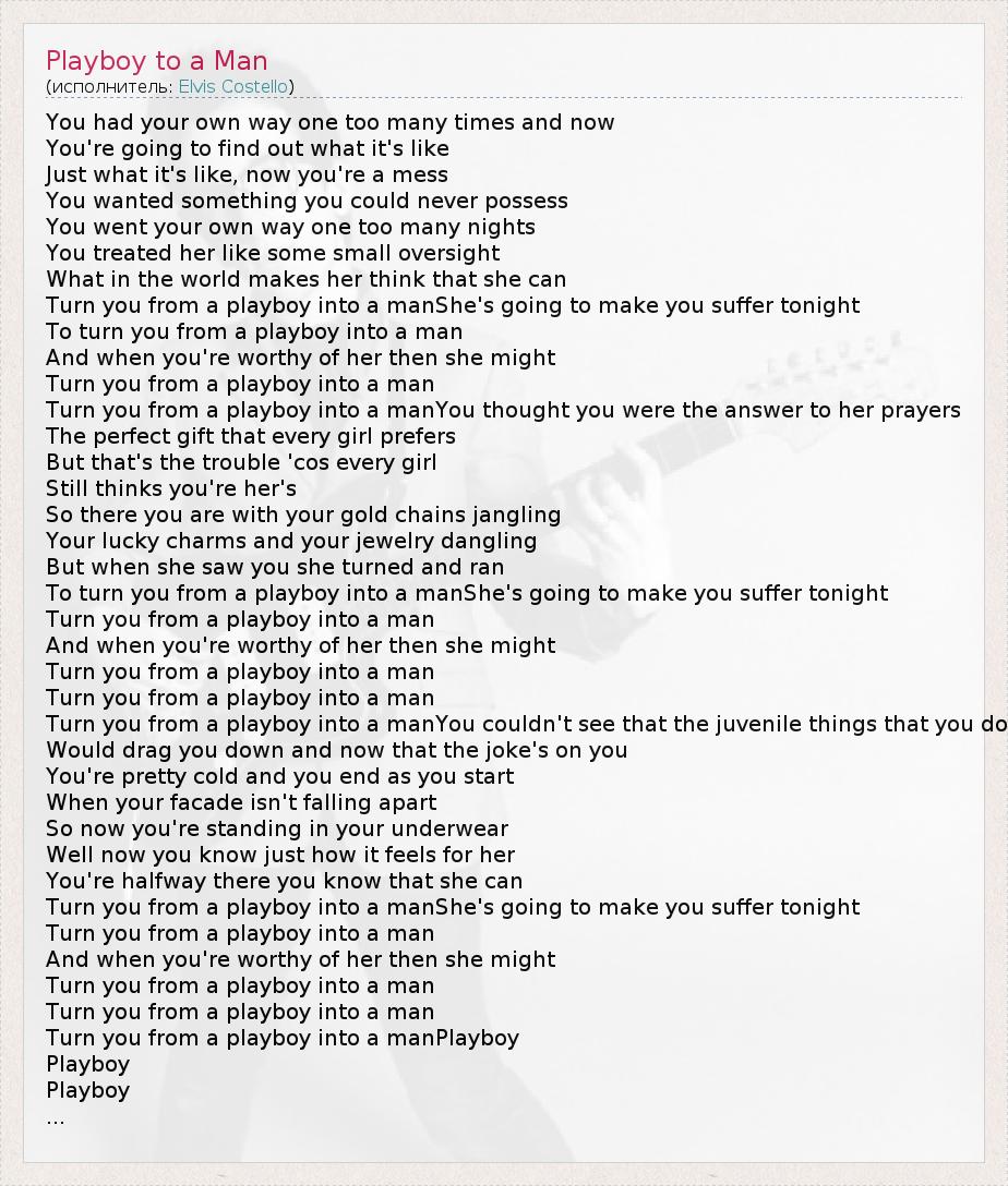 Turn you from a playboy into a manShe's going to make you suffer tonight