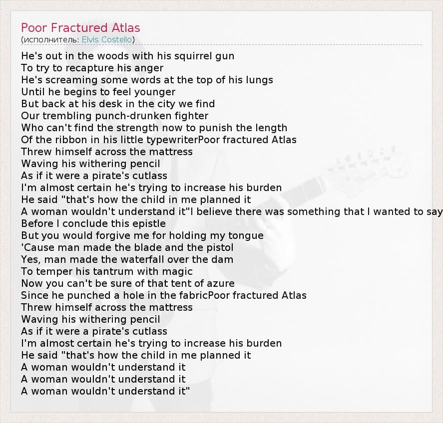 А как ты думаешь, о чем песня "Poor Fractured Atlas" ?